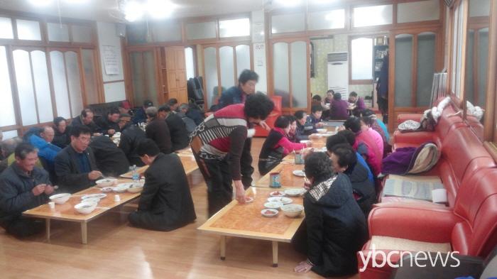 ºÎ³àȸ¿øµéÀÌ À常ÇÑ À½½Ä(¶±±¹)À» 맟ÀÖ°Ô ¸Ô°íÀÖ´Ù.