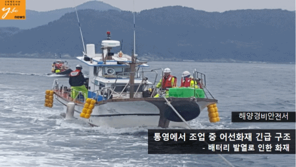 Åë¿µÇØ¾ç°æºñ¾ÈÀü¼´Â 31ÀÏ ¿ÀÀü 8½Ã28ºÐ²² Å뿵½Ã ¿åÁöµµ ÀαÙÇØ»ó¿¡¼ Á¶¾÷ ÁßÀÌ´ø ¿¬¾Èº¹Çվ¿¡ ÈÀç°¡ ¹ß»ýÇØ »ç°í¾î¼±À» ±ä±Þ ±¸Á¶Çß´Ù°í ¹àÇû´Ù.