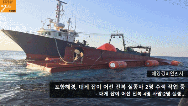 °æºÏ Æ÷Ç׽à ȣ¹Ì°ù ¾Õ¹Ù´Ù¿¡¼­ 30ÀÏ »õº® 27Åæ±Þ ´ë°ÔÀâÀÌ Åë¹ß¾î¼±ÀÌ ³ôÀº ÆÄµµ¿¡ µÚÁýÇô 4¸íÀÌ ¼ûÁö°í 2¸íÀÌ ½ÇÁ¾µÆ´Ù.