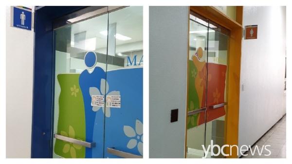 °æ±âµµ ÀǿսÃû 1Ãþ ³²ÀÚÈ­Àå½Ç ÃâÀÔ¹®¿¡ ºÙ¾îÀÖ´Â ¾È³» ¹®±¸°¡ ¿©ÀÚÈ­Àå½Ç¿¡´Â ºÙ¾îÀÖÁö ¾Ê´Ù.
