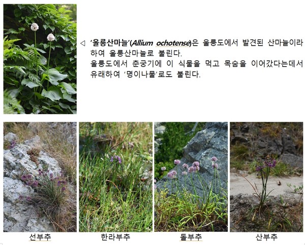 ¿ì¸®³ª¶ó ÀÚ»ý ºÎÃß¼Ó ½Ä¹°·Î´Â ¿ï¸ªµµ¿¡¸¸ ÀÚ»ýÇÏ´Â ¡®¿ï¸ª»ê¸¶´Ã¡¯À» ºñ·ÔÇÏ¿© ¡®¼±ºÎÃß¡¯, ¡®ÇѶóºÎÃß¡¯, ¡®µ¹ºÎÃß¡¯, ¡®µÕ±Ù»êºÎÃß¡¯, ¡®¼¼¸ð»êºÎÃß¡¯ µîÀÇ Æ¯»ê½Ä¹°ÀÌ ÀÖÀ¸¸ç, Èñ±Í½Ä¹°·Î ÁöÁ¤ÇÏ¿© °ü¸®Çϰí ÀÖ´Â ÀÚ»ý ¡®»ê¸¶´Ã¡¯, ¡®°ºÎÃß¡¯, ¡®»êÆÄ¡¯, ¡®½ÇºÎÃß¡¯, ¡®µÎ¸ÞºÎÃß¡¯ µîÀÌ ÀÖ´Ù.