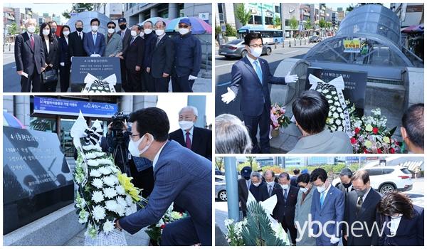 ÇãÅÂÁ¤ ´ëÀü½ÃÀåÀº 4¿ù 19ÀÏ ¿ÀÀü 11½Ã µ¿±¸ Áßµ¿ ¸ñô±³¿¡¼­ (»ç)´ëÀü¼¼Á¾Ãæ³²4.19Çõ¸íȸ(ȸÀå ÃÖ¿µ»ó) ȸ¿øµé°ú ÇÔ²² 4.19Çõ¸í Áø¿øÁö Ç¥Áö¼®À» ã¾Æ ÇåÈ­ÇÏ°í µ¶Àç¿¡ ¸Â¼­ ¹ÎÁÖÈ­¿îµ¿ÀÇ ¼±ºÀ¿¡ ¼¹´ø ½Ã¹ÎµéÀÇ Á¤½ÅÀ» ±â·È´Ù.