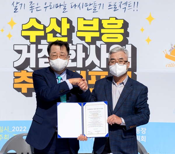 ÀÌ¿¡ ¿©¼¼¸¦ ¸ô¾Æ Áö¿ª°æÁ¦ Ȱ¼ºÈ¸¦ µµ¸ðÇϱâ À§ÇØ ÀÌÀåÇùÀÇȸ°¡ ÁÖÃàÀÌ µÇ¾î ¡®¼ö»ê ºÎÈï °ÅÁ¡È»ç¾÷ ÃßÁøÀ§¿øÈ¸(À§¿øÀå À庴¿î)¡¯¸¦ ¹ßÁ·ÇÑ ¼ö»ê¸éÀº, ¸é Á߽ɿ¡ ÀÖ´Â ÀÌÀåÇùÀÇȸ ¼ÒÀ¯ÀÇ ºÎÁö¿¡ ¾çÁúÀÇ Á¤ÁÖ¿©°Ç Á¶¼ºÀº ¹°·Ð, ¼ö»ê¸é Áß½ÉÁö¿Í °ü±¤Áö°¡ ÇÔ²² °áÇյǴ °ÅÁ¡(°ø°ø Ç÷§Æû) ±¸Ãà¿¡ ³ë·ÂÇÒ ¹æÄ§ÀÌ´Ù.