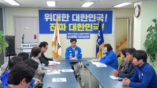 ÆòÅýà ÀÚ¿µ¾÷¼Ò»ó°øÀο¬ÇÕȸ´Â 14ÀÏ ¹ÎÁÖ´ç ÆòÅú´ ´ë¼± Ä·ÇÁ¸¦ ¹æ¹®ÇØ ÀÌÀç¸í Èĺ¸ ÁöÁö¸¦ ¼±¾ðÇϰí, °£´ãȸ¸¦ ÅëÇØ Á¤Ã¥ Á¦¾È¿¡ ³ª¼¹½À´Ï´Ù.