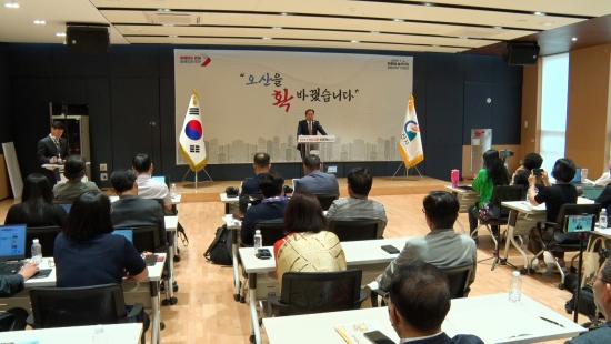 À̱ÇÀç ¿À»ê½ÃÀåÀÌ ¹Î¼±8±â 3ÁÖ³âÀ» ¸Â¾Æ ±×µ¿¾ÈÀÇ ¼º°ú¿Í ¹Ì·¡ºñÀüÀ» ¹ßÇ¥Çß½À´Ï´Ù. ¿À»ê½Ã´Â Àα¸50¸¸ ÀÚÁ·µµ½Ã ½ÇÇöÀ» À§ÇØ ±ÕÇü ÀÖ´Â µµ½Ã°³¹ß°ú ¹Ì·¡¼ºÀå ±â¹Ý ±¸Ãà¿¡ ¹ÚÂ÷¸¦ °¡ÇÒ ¿¹Á¤ÀÔ´Ï´Ù.]