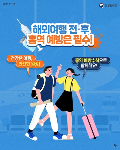 ÇØ¿Ü¿©ÇàÀ» °èȹ ÁßÀ̶ó¸é Áúº´°ü¸®Ã» ¡®Çؿܰ¨¿°º´ ³ª¿ì(NOW)¡¯´©¸®Áý ¶Ç´Â Äݼ¾ÅÍ(1339)¸¦ ÅëÇØ ¿©Çà ±¹°¡ÀÇ °¨¿°º´ ¹ß»ý Á¤º¸¸¦ È®ÀÎÇϰí, ƯÈ÷, È«¿ª ¹ß»ýÀÌ ¸¹Àº ±¹°¡¸¦ ¹æ¹®ÇÏ´Â °æ¿ì Ãâ±¹ ÃÖ¼Ò 4ÁÖ Àü ¿¹¹æÁ¢Á¾À» ¿Ï·áÇÏ´Â °ÍÀÌ ¹Ù¶÷Á÷ÇÏ´Ù.