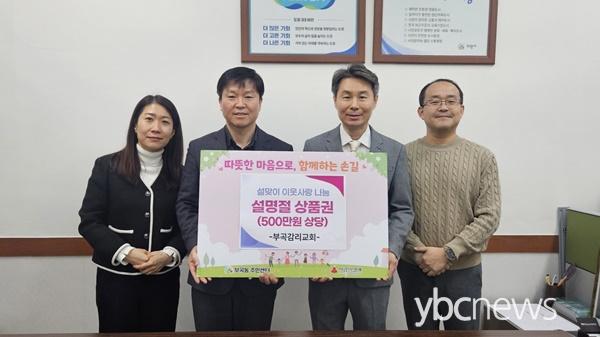 ÃÖ¼®¿ì ºÎ°îµ¿ÀåÀº ¡°¸Å³â Áö¿ª»çȸ¸¦ À§ÇØ µû¶æÇÑ ³ª´®À» ½ÇÃµÇØ Áֽô ºÎ°î°¨¸®±³È¸¿¡ ±íÀÌ °¨»çµå¸°´Ù¡±¸ç, ¡°¸íÀýÀÇ ±â»ÝÀ» ³ª´©´Â ¼±¹°ÀÌ µÉ »óǰ±ÇÀ» µµ¿òÀÌ ÇÊ¿äÇÑ ÀÌ¿ôµé¿¡°Ô Àß Àü´ÞÇϰڴ١±°í ¸»Çß´Ù.