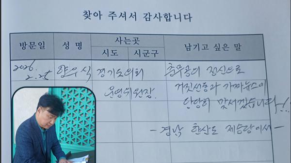 ³¡À¸·Î ¾ç À§¿øÀåÀº À̹ø Á¤±âȸÀÇ ÇöÀ广¹®ÁöÀÎ °æ³² Çѻ굵 Á¦½Â´çÀ» ã¾Æ Ãæ¹«»ç¸¦ Âü¹èÇÏ°í ¹æ¸í·Ï¿¡ ¡°Ã湫°øÀÇ Á¤½ÅÀ¸·Î °ÅÁþ ¼±µ¿°ú °¡Â¥´º½º¿¡ ´ç´çÈ÷ ¸Â¼­°Ú´Ù¡±°í ³²±â¸ç °á¿¬ÇÑ ÀÇÁö¸¦ ¹àÇû´Ù.
