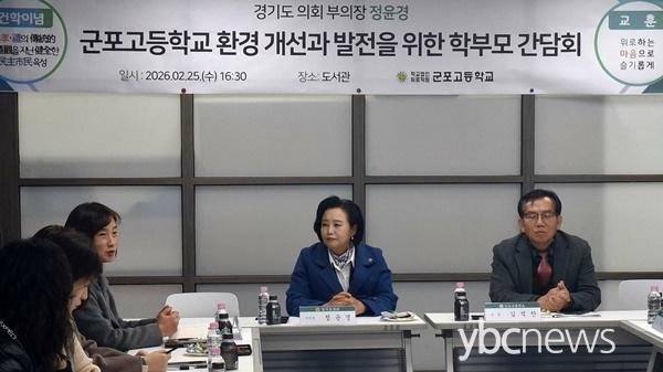 °æ±âµµÀÇȸ Á¤À±°æ ºÎÀÇÀå, ±ºÆ÷°íµîÇб³ ±³À°È¯°æ °³¼± °£´ãȸ °³ÃÖÇϰí Çб³ Çö¾È Àü¹Ý¿¡ ´ëÇØ ÀǰßÀ» ³ª´©´Ù - ±ºÆ÷°í ÇкθðµéÀÇ ¿äûÀ» ¸¶·ÃµÈ ÀÚ¸®, °ø±³À° »ì¸®±â ÇÁ·ÎÁ§Æ®¡¯¿¡ ´ëÇØ ³ôÀº °ü½É°ú Âü¿© ÀÇÁö¸¦ º¸ÀÎ Çкθð |