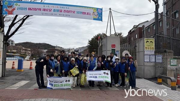 Âü¿©ÀÚµéÀº Çб³ ÁÖº¯¿¡ ¹æÄ¡µÈ »ýȰ¾²·¹±â¿Í ÀûÄ¡¹°À» ¼ö°ÅÇϰí, Àü´ÜÁö¿Í º®º¸ µî º¸Çà¿¡ ºÒÆíÀ» ÁÖ´Â ºÒ¹ý±¤°í¹°À» ÇÔ²² Á¤ºñÇϸç ÄèÀûÇÑ ÅëÇÐȯ°æ Á¶¼º¿¡ ÈûÀ» º¸ÅÉ´Ù.