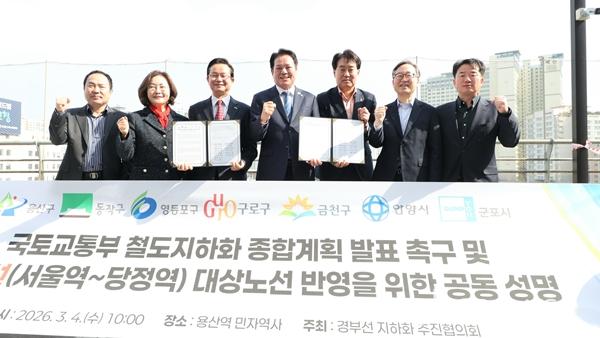 ½Ã´Â 4ÀÏ ¿ÀÀü 10½Ã ¼¿ï ¿ë»ê¿ª ¹ÎÀÚ¿ª»ç ȸÀǽǰú ¿ª»ç ³» ¾ß¿Ü°ø°£¿¡¼ ¿¸° °æºÎ¼± ÁöÇÏÈ ÃßÁøÇùÀÇȸ ȸÀÇ¿¡ Âü¼®ÇØ, ¡®Ã¶µµ ÁöÇÏÈ ÅëÇÕ°³¹ß Á¾ÇÕ°èȹ ¹ßÇ¥ Ã˱¸ °øµ¿¼º¸í¼¡¯ ¿¡ ¼¸íÇß´Ù. ¼öµµ±Ç µµ½ÉÀ» °üÅëÇÏ´Â °æºÎ¼± ±¸°£ÀÇ ÁöÇÏÈ Çʿ伺À» °øµ¿À¸·Î ÀçÈ®ÀÎÇÑ °ÍÀÌ´Ù.