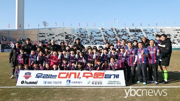 ÀÌÀç½Ä ÀÇÀåÀº ¼±¼ö´ÜÀ» °Ý·ÁÇÏ¸ç ¡°¼ö¿øFC°¡ ½Ã¹Îµé¿¡°Ô Å« Áñ°Å¿ò°ú ÀںνÉÀ» ¾È°ÜÁÖ´Â ±¸´ÜÀ¸·Î ´õ¿í ¼ºÀåÇÏ±æ ±â´ëÇÑ´Ù¡±¸ç ¡°¼±¼öµéÀÌ ºÎ»ó ¾øÀÌ ¸ÚÁø °æ±â¸¦ ÆîÄ¡±æ ÀÀ¿øÇÑ´Ù¡±°í ¸»Çß´Ù.