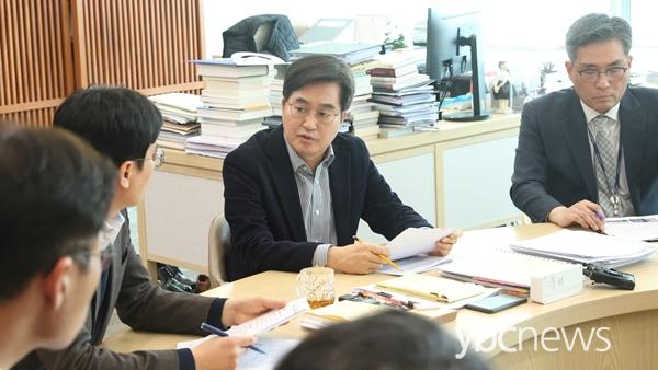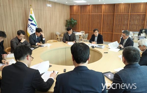 ±èµ¿¿¬ Áö»ç´Â ¡°ÁÖ°¡µµ ±×·¸°í °æÁ¦¿¡ ºÒ¾ÈÁ¤¼ºÀÌ Ä¿Áö°í ÀÖ´Ù. ¿À´Ã ¾ÆÄ§ ´ëÅë·É²²¼ ȸÀÇÇß´Ù´Â ¼Ò½ÄÀ» µé¾ú´Âµ¥ ±¹Á¤ÆÄÆ®³ÊÀÎ °æ±âµµ¿¡¼µµ ÇÒ ¼ö ÀÖ´Â ÀÏÀ» ã¾Æº¸°í µµ¹Î¿¡°Ô ¾ÈÁ¤°¨À» ÁÙ ¼ö ÀÖ´Â ½Å¼ÓÇÑ Á¶Ä¡¸¦ Çϱâ À§ÇØ È¸ÀǸ¦ ¼ÒÁýÇß´Ù¡±°í ¹è°æÀ» ¼³¸íÇß´Ù.