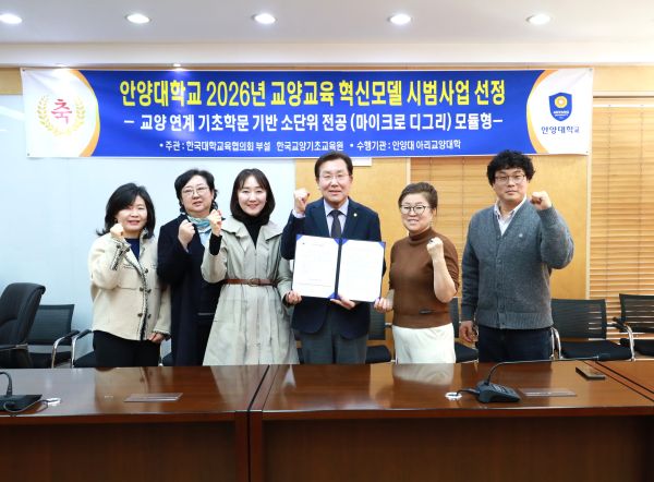 ¾È¾ç´ëÇб³(ÃÑÀå À層¼ö)´Â 13ÀÏ ±³¹«È¸Àǽǿ¡¼ ±³¹«Ã³¿Í ¾Æ¸®±³¾ç´ëÇÐ ±âÃʱ³À°¼¾ÅÍ, À¶ÇÕÀÚÀ¯Àü°ø¼¾ÅÍ µîÀÌ Âü¿©ÇÏ´Â 「±³¾ç±³À°Çõ½Å ´ëåȸÀÇ」¸¦ °³ÃÖÇϰí, Çѱ¹´ëÇб³À°ÇùÀÇȸ ºÎ¼³ Çѱ¹±³¾ç±âÃʱ³À°¿øÀÌ ÃßÁøÇÏ´Â 「2026³âµµ ±³¾ç±³À° Çõ½Å¸ðµ¨ ½Ã¹ü»ç¾÷ ¿î¿µ ´ëÇÐ」À¸·Î ÃÖÁ¾ ¼±Á¤µÆ´Ù°í ¹àÇû´Ù.