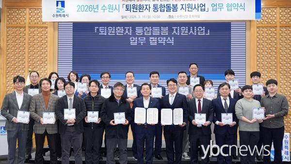 ¼ö¿ø½Ã¿Í °ü³» 23°³ º´¿øÀº 16ÀÏ ½Ãû ÁßȸÀǽǿ¡¼ ¡®Åð¿øÈ¯ÀÚ ÅëÇÕµ¹º½ Áö¿ø»ç¾÷¡¯ ¾÷¹«Çù¾àÀ» ü°áÇϰí, Åð¿øÈ¯ÀÚ°¡ Áö¿ª»çȸ¿¡¼ ¾ÈÁ¤ÀûÀ¸·Î »ýȰÇÒ ¼ö Àִ ȯ°æÀ» ¸¸µé±â À§ÇØ Çù·ÂÇϱâ·Î Çß´Ù.