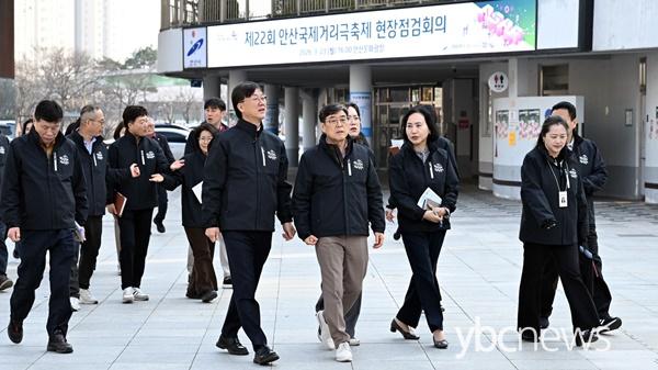 À̹α٠¾È»ê½ÃÀåÀº ¹®ÈüÀ°°ü±¤±¹Àå µî °ü°è °ø¹«¿ø°ú ÇÔ²² ÃàÁ¦ÀåÀ» Á¡°ËÇϰí, ½Ã¹ÎµéÀÌ ¾ÈÀüÇϰí ÄèÀûÇÏ°Ô ÃàÁ¦¸¦ Áñ±æ ¼ö ÀÖµµ·Ï Áغñ »óȲÀ» ²Ä²ÄÈ÷ È®ÀÎÇß´Ù.