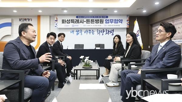 À̳¯ Çù¾à½Ä¿¡´Â ȼºÆ¯·Ê½Ã Á¦1ºÎ½ÃÀå°ú µ¹º½º¹Áö±¹Àå, ưưº´¿øÀå µî °ü°èÀÚµéÀÌ Âü¼®ÇØ ¹Î°ü Çù·ÂÀ» ÅëÇÑ Àå¾ÖÀÎ Áö¿ø È®´ë ¹æ¾È¿¡ ¶æÀ» ¸ð¾Ò´Ù.