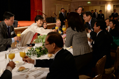À̳¯ ´º¿å µ¿Æ÷°£´ãȸ¿¡´Â À±º´¼¼ ¿Ü±³ºÎÀå°ü, À±»óÁ÷ »ê¾÷Åë»óÀÚ¿øºÎÀå°ü, ÃÖ¿µÁø Áֹ̱¹´ë»ç, ÁÖö±â ¿Ü±³¾Èº¸¼ö¼®, À̳²±â È«º¸¼ö¼®À» ºñ·ÔÇÑ °ø½Ä ¹× Ưº°¼öÇà¿ø°ú µ¿Æ÷ µî ¾à 450¸íÀÌ Âü¼®Çß´Ù.