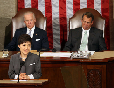 ¹Ú±ÙÇý ´ëÅë·ÉÀÌ 8ÀÏ ¿ÀÀü(ÇöÁö½Ã°£) ¹Ì±¹ ÀÇȸ »óÇÏ¿ø ÇÕµ¿È¸ÀÇ¿¡¼ ¿¬¼³Çß´Ù. ¿ì¸® ³ª¶ó ´ëÅë·ÉÀ¸·Î¼´Â 6¹øÂ° ¿¬¼³ÀÌ´Ù.