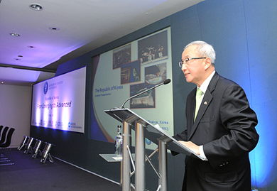 Çö¿À¼® ºÎÃѸ®°¡ ¿µ±¹ ·±´ø¿¡¼­ ¿­¸° Çѱ¹°æÁ¦¼³¸íȸ(IR)¿¡¼­ ¡®½ÅÈï±¹¿¡¼­ ¼±Áø±¹À¸·Î¡¯¶õ ÁÖÁ¦·Î ¹ßÇ¥Çϰí ÀÖ´Ù.