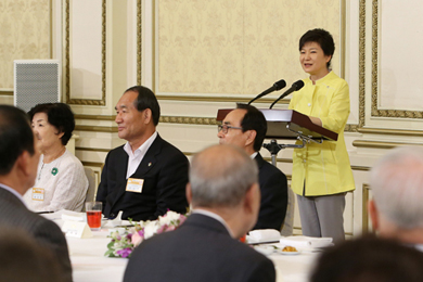 ¹Ú ´ëÅë·ÉÀº À̳¯ û¿Í´ë·Î ±¹°¡À¯°øÀÚ¿Í À¯Á·, ³ª¶ó»ç¶û ¹®È­ È®»ê ±â¿©ÀÚ µî 240¿©¸íÀ» ÃÊÃ»ÇØ ¿ÀÂùÀ» ÇÔ²² Çϸç À̰°ÀÌ ¹àÇû´Ù.