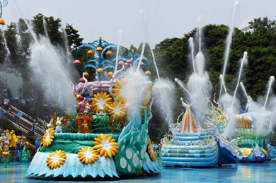 6´ëÀÇ ÇÃ·ÎÆ®¿Í ÃÑ 40°³ÀÇ ¿öÅÍij³í(¹°´ëÆ÷)¿¡¼ »ç¹æÀ¸·Î ºÐ»çÇÏ´Â ÃÑ 84ÅæÀÇ ¹°ÁÙ±â¿Í ¼Õ´ÔÀÌ Á÷Á¢ Âü¿©ÇØ ÆÛ·¹ÀÌµå ¿¬±âÀÚ¿Í ÆîÄ¡´Â ¹°ÃѳîÀÌ´Â ÀÌ»ö °æÇèÀ» Á¦°øÇÑ´Ù.