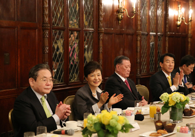 ´ëÇÑ»ó°øÈ¸ÀǼҴ ¹Ú ´ëÅë·ÉÀÇ À̹ø ¹æÁß¿¡ ¼Õ°æ½Ä ´ëÇÑ»óÀÇ È¸Àå, Çãâ¼ö Àü°æ·Ã ȸÀå, ÇÑ´ö¼ö ¹«¿ªÇùȸ ȸÀå, ±è±â¹® Áß±âÁß¾Óȸ ȸÀå µî °æÁ¦4´ÜüÀå°ú Á¤¸ù±¸ Çö´ëÂ÷ ȸÀå, ±èâ±Ù SK ȸÀå, ±¸º»¹« LG±×·ì ȸÀå, ½Åµ¿ºó ·Ôµ¥±×·ì ȸÀå, ÇöÁ¤Àº Çö´ë±×·ì ȸÀå, Á¤ÁØ¾ç Æ÷½ºÄÚ È¸Àå, Á¶¾çÈ£ ÇÑÁø±×·ì ȸÀå, À̼®Ã¤ KT ȸÀå, ¹Ú¿ë¸¸ µÎ»ê±×·ì ȸÀå, °­È£¹® »ï¼ºÀüÀÚ ºÎȸÀå µî 71¸íÀÇ »çÀý´ÜÀÌ ±¸¼ºµÆ´Ù°í 24ÀÏ ¹àÇû´Ù.