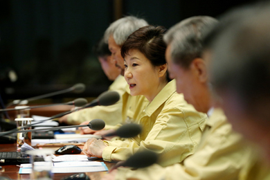¹Ú±ÙÇý ´ëÅë·ÉÀÌ 20ÀÏ ¿ÀÀü û¿Í´ë¿¡¼­ ¿­¸° ¼ö¼®ºñ¼­°üȸÀÇ¿¡¼­ Çö¾È¿¡ ´ëÇØ ¹ß¾ðÇϰí ÀÖ´Ù.(»çÁø=û¿Í´ë)