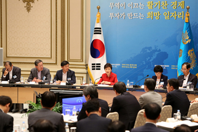 ¹Ú±ÙÇý ´ëÅë·ÉÀÌ 25ÀÏ Ã»¿Í´ë¿¡¼­ ¿­¸° Á¦3Â÷ ¹«¿ªÅõÀÚÁøÈïȸÀÇ¿¡ Âü¼®ÇØ ¸ðµÎ¹ß¾ðÀ» Çϰí ÀÖ´Ù. (»çÁø=û¿Í´ë)