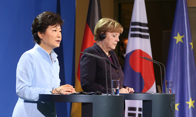 µ¶ÀÏÀ» ±¹ºó¹æ¹® ÁßÀÎ ¹Ú±ÙÇý ´ëÅë·ÉÀº 26ÀÏ(ÇöÁö½Ã°£) ¡°µ¶ÀÏÀº ÀÌ¹Ì ÅëÀÏÀ» ³Ñ¾î ÅëÇÕÀ» ´Þ¼ºÇß´Ù´Â Á¡¿¡¼­ ¿ì¸®¿¡°Õ Çѹݵµ ÆòÈ­ÅëÀÏÀÇ ¸ðµ¨À̱⵵ ÇÏ´Ù¡±°í ¸»Çß´Ù.