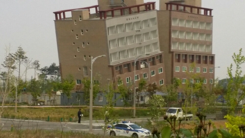 ºØ±«Á÷ÀüÀ¸·Î º¸ÀÌ´Â ¾Æ»ê½Ã µÐÆ÷¸é ¼®°î¸®¿¡ À§Ä¡ÇÑ 7Ãþ ¿ÀÇǽºÅÚ ½ÅÃà°Ç¹°. °Ç¹° ÀÔÁÖÀüÀ̶ó ´ÙÇàÈ÷ ÀθíÇÇÇØ´Â ¾ø´Ù°í ÇÑ´Ù.