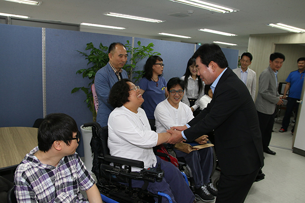 »õÁ¤Ä¡¹ÎÁÖ¿¬ÇÕ ±èÁøÇ¥ °æ±âµµÁö»ç È帴 29ÀÏ ¿ÀÀü ¼ö¿ø½Ã Àΰ赿 µëÁ÷Ä·ÇÁ¿¡¼­ °æ±âÀå¾ÖÀÎÂ÷º°Ã¶Æó ¿¬´ë Á¤Ã¥°£´ãȸ¿¡ Âü¼®ÇÑ °æ±âÁö¿ª Àå¾ÖÀΠȸ¿ø°ú ¾Ç¼ö¸¦ ³ª´©°í ÀÖ´Ù.