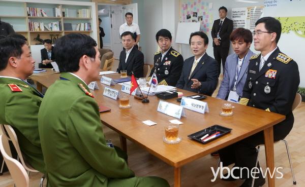 15ÀÏ(¿ù) ¿ÀÈÄ °æ±âµµÁö»ç Áý¹«½Ç¿¡¼­ ³²°æÇÊ °æ±âµµÁö»ç°¡ µµ¾È ºñ¿¡Æ® ¸¸(Doan Viet Manh) º£Æ®³² ¼Ò¹æ±¹Àå µî °ü°èÀÚµé°ú ȯ´ãÀ» ³ª´©°í ÀÖ´Ù.