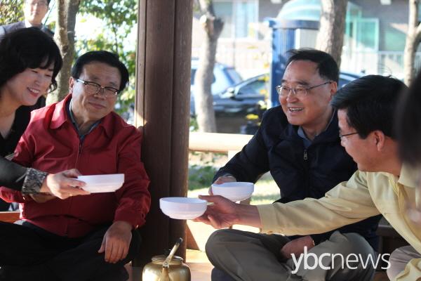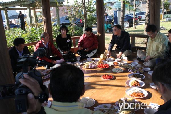 º­º£±â½Ã¹ü ÈÄ ½Å 4¸® ¸¶À»È¸°ü ¾Õ Á¤ÀÚ¿¡¼­ ³ó¹Î´ëÇ¥µî °ü°èÀÚµé°ú °£´ãȸ¸¦ °®°í ÀÖ´Ù