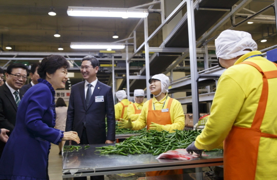 ¹Ú ´ëÅë·ÉÀº Åä·Ðȸ¸¦ ¸¶Ä¡°í Àαٿ¡ ÀÖ´Â ³óÇù ³ó½Äǰ¹°·ù¼¾ÅÍ*¸¦ ¹æ¹®ÇÏ¿© ¡®³óÃà»ê¹° À¯Å뱸Á¶°³¼±¡¯ ÃßÁø»óȲÀ» Á¡°ËÇϰí, °ü°èÀÚµéÀ» °Ý·ÁÇß½À´Ï´Ù.