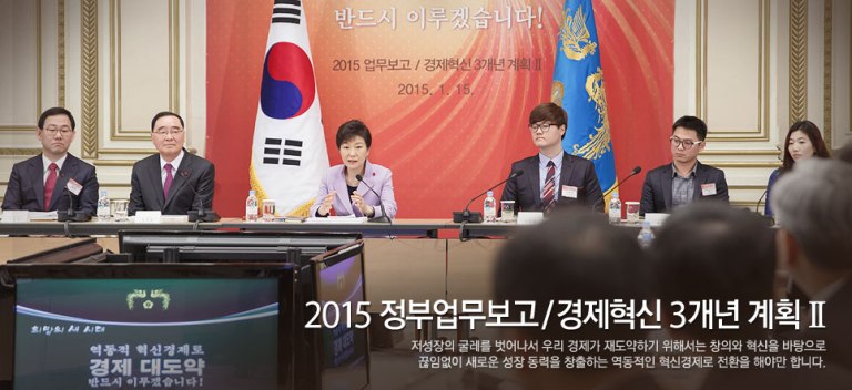¹Ú±ÙÇý ´ëÅë·ÉÀº °æÁ¦ Àçµµ¾àÀ» À§Çؼ­ âÀÇ¿Í Çõ½ÅÀ» ¹ÙÅÁÀ¸·Î ÇÑ ¿ªµ¿Àû Çõ½Å°æÁ¦ ÀüȯÀ» °­Á¶Çϰí, À̸¦ À§ÇØ ¡®Ã¢Á¶°æÁ¦ÀÇ ±¸Çö¡¯, ¡®¹Ì·¡´ëºñ ÅõÀÚ¡¯, ¡®¼¼°è½ÃÀå °æÀï·Â Çâ»ó¡¯À» ÇٽɰúÁ¦·Î ÁÖ¹®Çß½À´Ï´Ù.