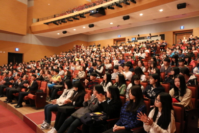 À̳¯ ÄܼƮ´Â ±èÆ÷½Ã Çкθð¿Í ÀÚ³à µî 500¿© ¸íÀÌ Âü¼®ÇÑ °¡¿îµ¥ À¶±â¿ø ¿øÀåÀ» ¸Ã°í ÀÖ´Â ¼¿ï´ë ¹ÚÅÂÇö ±³¼ö°¡ ¿¬»ç·Î Á÷Á¢ ³ª¼ ¡®À¶ÇÕÇü ÀÎÀç·Î Ű¿ì´Â Àڳ౳À°¡¯À» ÁÖÁ¦·Î °¿¬Çß´Ù.