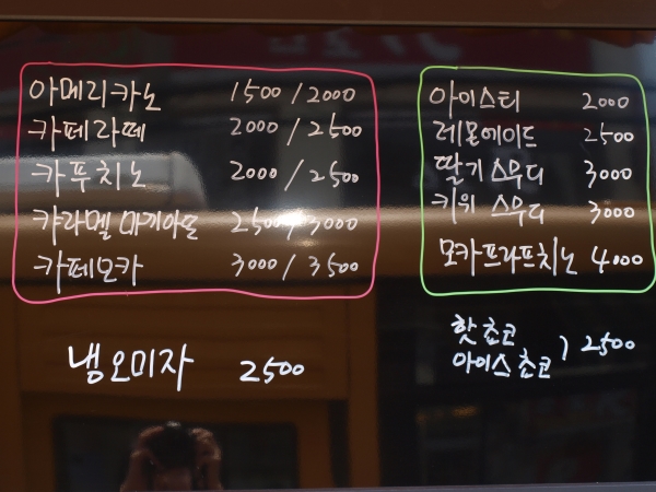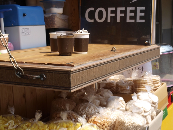 ¼Á¤¸® ½ÃÀå ¹ö½ºÁ¤·ùÀå ¿·¿¡ ÀÖ´Â 'COFFEE'. ¿Ü°üÀº ´ÜÃâÇØ º¸ÀÌÁö¸¸ ´Ù¾çÇÑ ¸Þ´º·Î Áö³ª°¡´Â »ç¶÷µéÀÇ ½Ã¼±À» ²ö´Ù. ´õ¿íÀÌ ¸Å·ÂÀûÀÎ °ÍÀº Àú·ÅÇÑ °¡°Ý!
