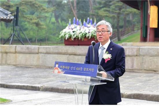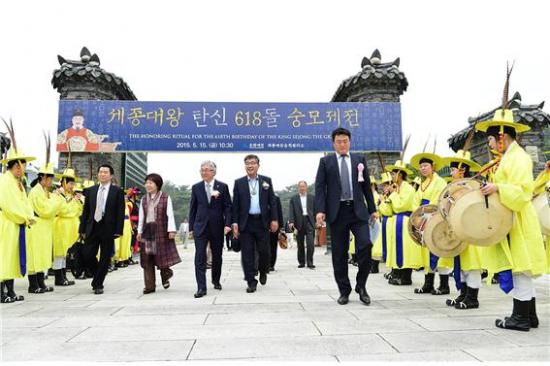 ¼¼Á¾´ë¿ÕÀÇ ¾Ö¹ÎÁ¤½Å°ú À§¾÷À» ±â¸®±â À§ÇÑ ¼þ¸ðÁ¦Àü¿¡´Â ±èÁ¾´ö ¹®È­Ã¼À°°ü±¤ºÎÀå°ü, ³ª¼±È­ ¹®È­ÀçûÀå, ¿ø°æÈñ ¿©ÁÖ½ÃÀå µî °¢°è Àλç, ÀüÁÖÀ̾¾ ´ëµ¿Á¾¾à¿ø °ü°èÀÚ, ¼¼Á¾´ë¿Õ À§¾÷ ¼±¾ç ´Üü °ü°èÀÚ, Áö¿ªÁÖ¹Î, ÀÏ¹Ý Âü¹è°´ µî 1õ¿©¸íÀÌ Âü¼®ÇØ ¼ºÈ²¸®¿¡ °³ÃֵƴÙ.