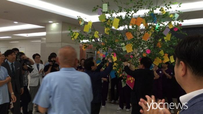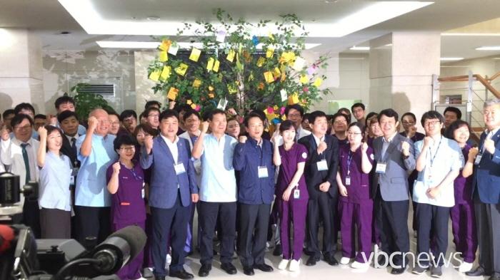 ³²°æÇÊ °æ±âµµÁö»ç¿Í °µæ±¸ °æ±âµµÀÇȸ ÀÇÀåÀ» ºñ·ÔÇÑ µµÀÇ¿øµéÀÌ Áßµ¿È£Èí±âÁõÈıº(MERS¡¤¸Þ¸£½º)À¸·Î Æó¼âÇß´Ù°¡ ÃÖ±Ù Àç°³¿øÇÑ ÆòÅüº¸ðº´¿øÀ» ¹æ¹®ÇØ Á¤»óÈ ³ë·Â ÁßÀÎ ÀÇ·áÁøÀ» °Ý·ÁÇϰí ȯÀڵ鿡°Ô ÀÀ¿øÀÇ ¸Þ½ÃÁö¸¦ ÀüÇß´Ù.