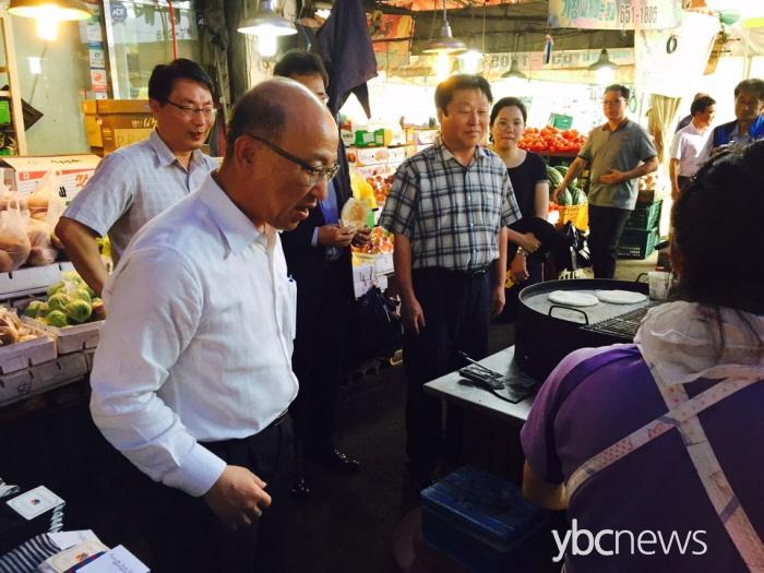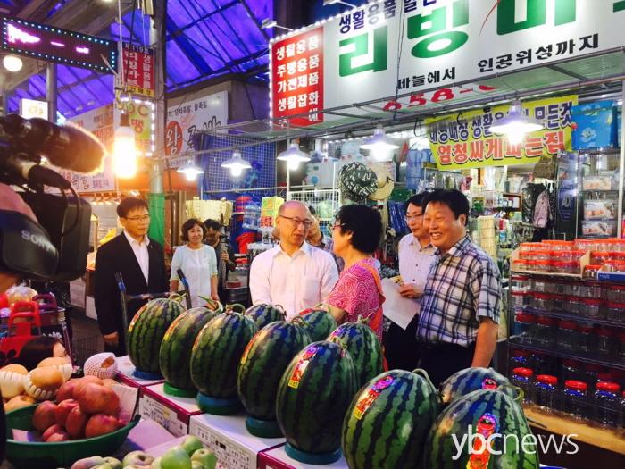 ¹® Àå°üÀº ¹æ¹®¿¡ ¾Õ¼ ¸Þ¸£½º·Î ¾î·Á¿òÀ» °Þ°í ÀÖ´Â ½ÃÀå »óÀεéÀ» À§·ÎÇÏ°í ¹°Ç°À» ±¸ÀÔÇϱâ À§ÇØ ÆòÅýà Å뺹ÀüÅë½ÃÀåÀ» ¹æ¹®Çß´Ù.