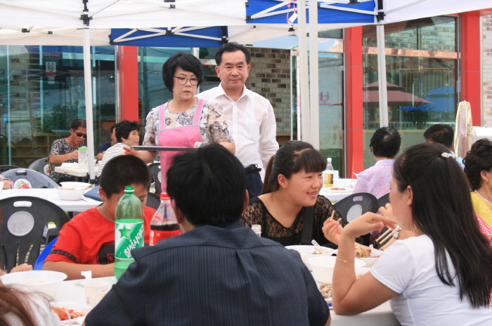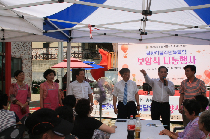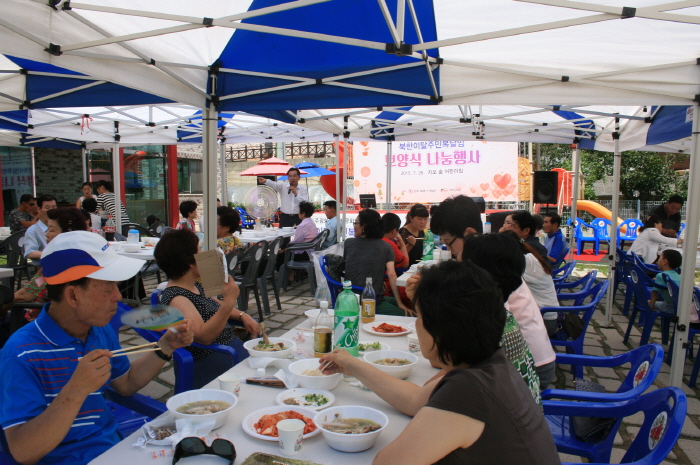 À̹ø »ç¶ûÀÇ Á¡½É³ª´©±â Çà»ç´Â ºÏÇÑ ÀÌÅ»ÁֹΠ80¿©¸í°ú ÀÚ¹®À§¿ø 20¿©¸íÀÌ Âü¼®ÇØ »ï°èÅÁ°ú °úÀÏÀ» ÇÔ²² ³ª´©¾î ¸Ô¾ú´Ù.