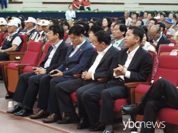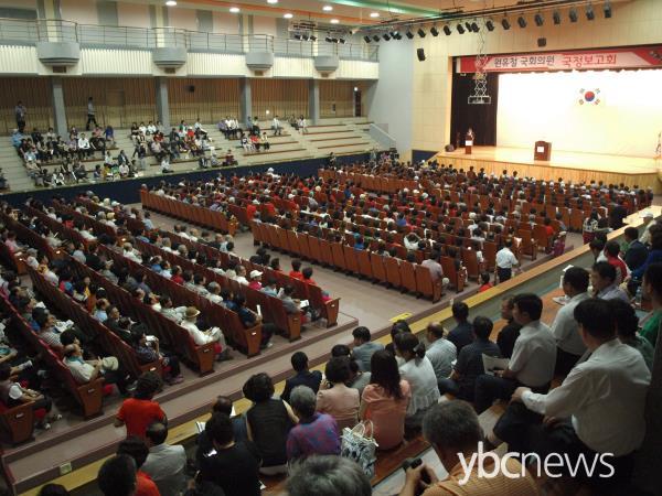 À̳¯ º¸°íȸ´Â ¿ø ÀÇ¿øÀ» ºñ·ÔÇØ À¯Àǵ¿ ±¹È¸ÀÇ¿ø, ÃÖÈ£ µµÀÇ¿ø, ±èöÀÎ µµÀÇ¿ø, ±èÀ±Å ½ÃÀÇ¿ø, À̺´¹è ½ÃÀÇ¿ø µî ±â°üÀåµé°ú ÁֹΠ900¿© ¸íÀÌ Âü¼®ÇØ º¸°íȸÀåÀ» °¡µæ ¸Þ¿ü´Ù.