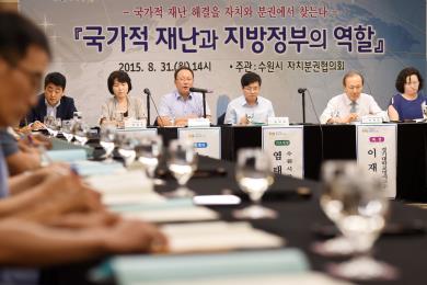¼ö¿ø½Ã°¡ ±¹°¡Àû Àç³ ÇØ°áÀ» ÀÚÄ¡¿Í ºÐ±Ç¿¡¼ ã±â À§ÇÑ ¡®±¹°¡Àû Àç³°ú Áö¹æÁ¤ºÎÀÇ ¿ªÇÒ¡¯ Åä·Ðȸ¸¦ 31ÀÏ ¿ÀÈÄ 2½Ã ¼ö¿ø À̺ñ½º È£ÅÚ¿¡¼ °³ÃÖÇß´Ù.