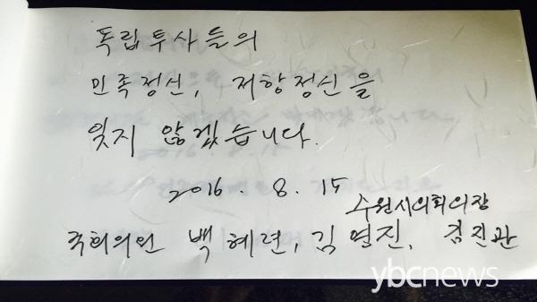 ¹éÇý·Ã, ±è¿µÁø±¹È¸ÀÇ¿ø, ±èÁø°ü ¼ö¿ø½ÃÀÇÀå ¹æ¸í·Ï
