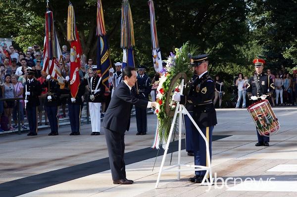 ¹Ì±¹ °ø½Ä¹æ¹® ÁßÀÎ Á¤¼¼±Õ ÀÇÀåÀº ÇöÁö½Ã°£ 9¿ù 12ÀÏ(¿ù) ¿ÀÈÄ ¾Ë¸µÅÏ ±¹¸³¹¦Áö¸¦ ã¾Æ Âü¹èÇϰí, Çѱ¹Àü ÂüÀü±â³äºñ¿¡ ÇåÈ­Çϸ鼭 ù ÀÏÁ¤À» ½ÃÀÛÇß´Ù.