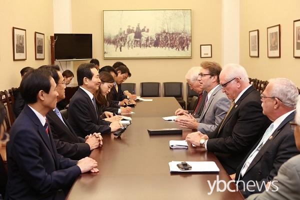 ÀÌÈÄ Á¤¼¼±Õ ÀÇÀåÀº ¿À¸° ÇØÄ¡ »ó¿ø ÀÓ½ÃÀÇÀåÀ» ¸¸³ª ÇÑ¹Ì FTAÀÇ ¿ÏÀüÇÑ ÀÌÇà°ú ÀÇȸÀÇ ÇùÁ¶¸¦ ´çºÎ¹Þ¾ÒÀ¸¸ç, ÀÌ¿¡ ¾Õ¼± ¿ÀÀü 10½Ã 30ºÐ ÀÇ»ç´ç ÇÏ¿ø ¿ø³»´ëÇ¥½Ç¿¡¼ ³½½Ã Æç·Î½Ã(Nancy Pelosi) ¹Ì ÇÏ¿ø ¿ø³»´ëÇ¥¿Í ¸é´ãÇß´Ù.