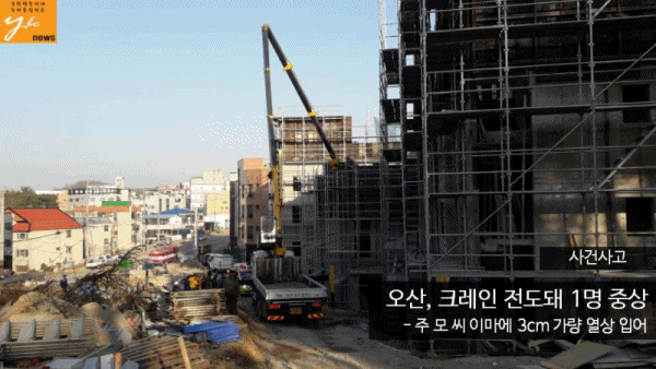 Áö³ 6ÀÏ ¿ÀÀü 8½Ã 20ºÐ°æ, °æ±âµµ ¿À»ê ûÇе¿ÀÇ ÇÑ ½ÅÃà °ø»çÇöÀå¿¡¼ Å©·¹ÀÎÀÌ ÀüµµµÅ 1¸íÀÌ Áß»óÀ» ÀÔ¾ú´Ù.