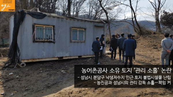 ³ó¾îÃ̰ø»ç ¼ÒÀ¯·Î ¾Ë·ÁÁø ºÐ´ç±¸ µ¿¿øµ¿ ³«»ýÀú¼öÁö Àα٠ÅäÁö¿¡ ¼ö³â°£ ºÒ¹ý½Ã¼³¹°ÀÌ ³¸³Çϰí ÀÖ¾î, ³ó¾îÃ̰ø»ç ÃøÀÇ °ü¸®¡¤°¨µ¶ ¼ÒȦ¿¡ ´ëÇÑ ÁöÀûÀÌ Á¦±âµÇ°í ÀÖ´Ù. ƯÈ÷, ÀÌ Áö¿ª¿¡´Â °æ°è ¹®Á¦¿Í °ü·ÃÇØ ÅäÁö ¼ÒÀ¯ÁÖµé °£ ¸¶ÂûÀÌ ºú¾îÁ® ´ëÃ¥ ¸¶·ÃÀÌ ½Ã±ÞÇÑ »óÅÂÀÌ´Ù.