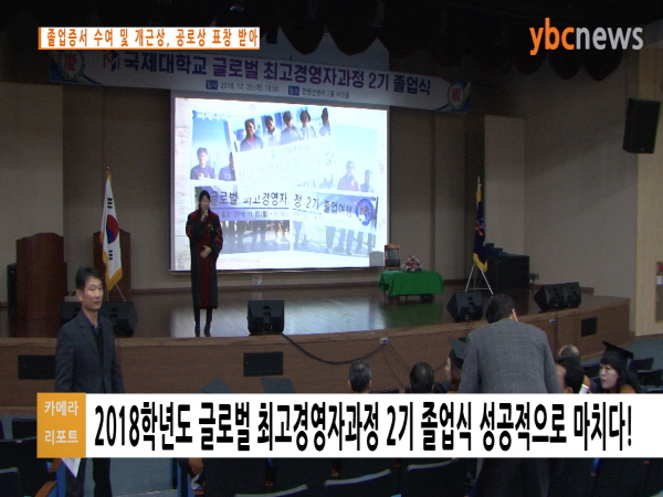 [Ä«¸Þ¶ó¸®Æ÷Æ®/ÇöÀåÃëÀç]±¹Á¦´ëÇб³, 2018Çг⵵ ±Û·Î¹ú ÃÖ°í°æ¿µÀÚ°úÁ¤ 2±â Á¹¾÷½Ä ¼º°øÀûÀ¸·Î ¸¶Ä¡´Ù! - Á¹¾÷Áõ¼ ¼ö¿© ¹× °³±Ù»ó, °ø·Î»ó ǥâ ¹Þ¾Æ |